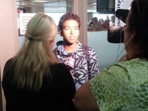 Isaiah Rider being interviewed by local media in Kansas City. Photo by Team Isaiah Facebook Page [1].