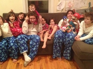 Rembis kids on Christmas Eve in new PJs – handmade by Mom. Source: Rembis family