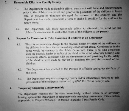 No Immediate Danger, Yet CPS Files for Custody & Termination of Parental Rights