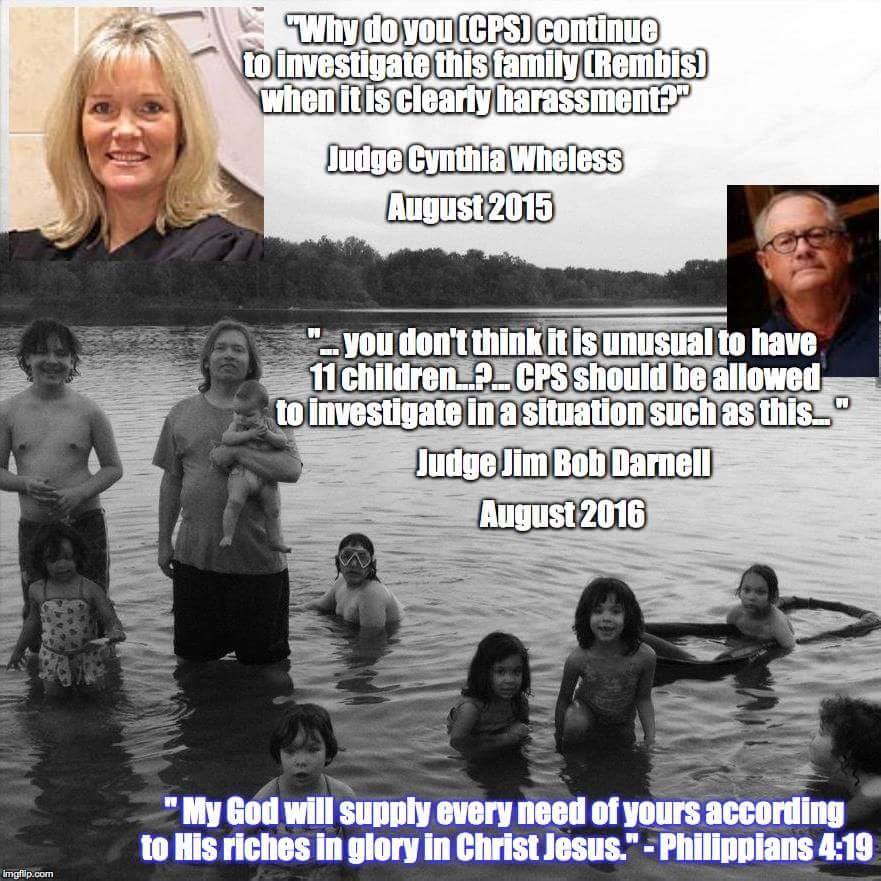 Although Claire and William Rembis from Texas were disappointed that their children were not returned home on Tuesday 9/20, they feel confident that the children will be home “quickly,” as stated by Judge Hart.  A Status Update hearing is scheduled for 10/5 to confirm that the Rembis’ have stable housing and employment before the children can be returned home.