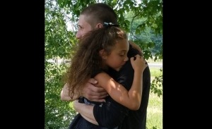 Annalise and her dad at Baby Steffen’s funeral last month. Photo source: Reunite the Rivenburgs [1] Facebook page.