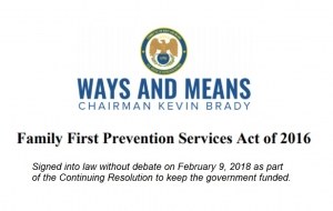 Perhaps you’ve heard. Tacked onto the bill that averted another government shutdown is a child welfare finance “reform” measure called the Family First Prevention Services Act.