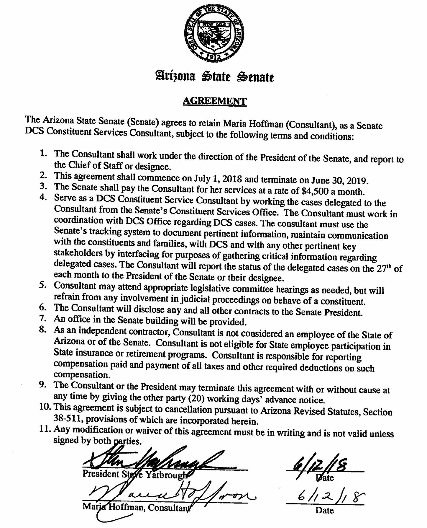 Hoffman is not an elected official, but a contractor for the State of Arizona who reports directly to the President of the Senate. It is reported that all lawmakers in Arizona, whether in the House or the Senate, are told to not deal with any of their constituents’ concerns about their children being removed from their home and placed into State custody, but to refer all of these matters to her only.