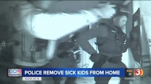 In a military SWAT-like operation Arizona police break down the door of a family at 1 AM because the parents did not take one of their children who had a fever to an emergency room at the request of a doctor. The child was reportedly sleeping soundly and only had a fever of 100 degrees when the police and social workers arrived in the early morning hours. Story [1]Image Source [2].