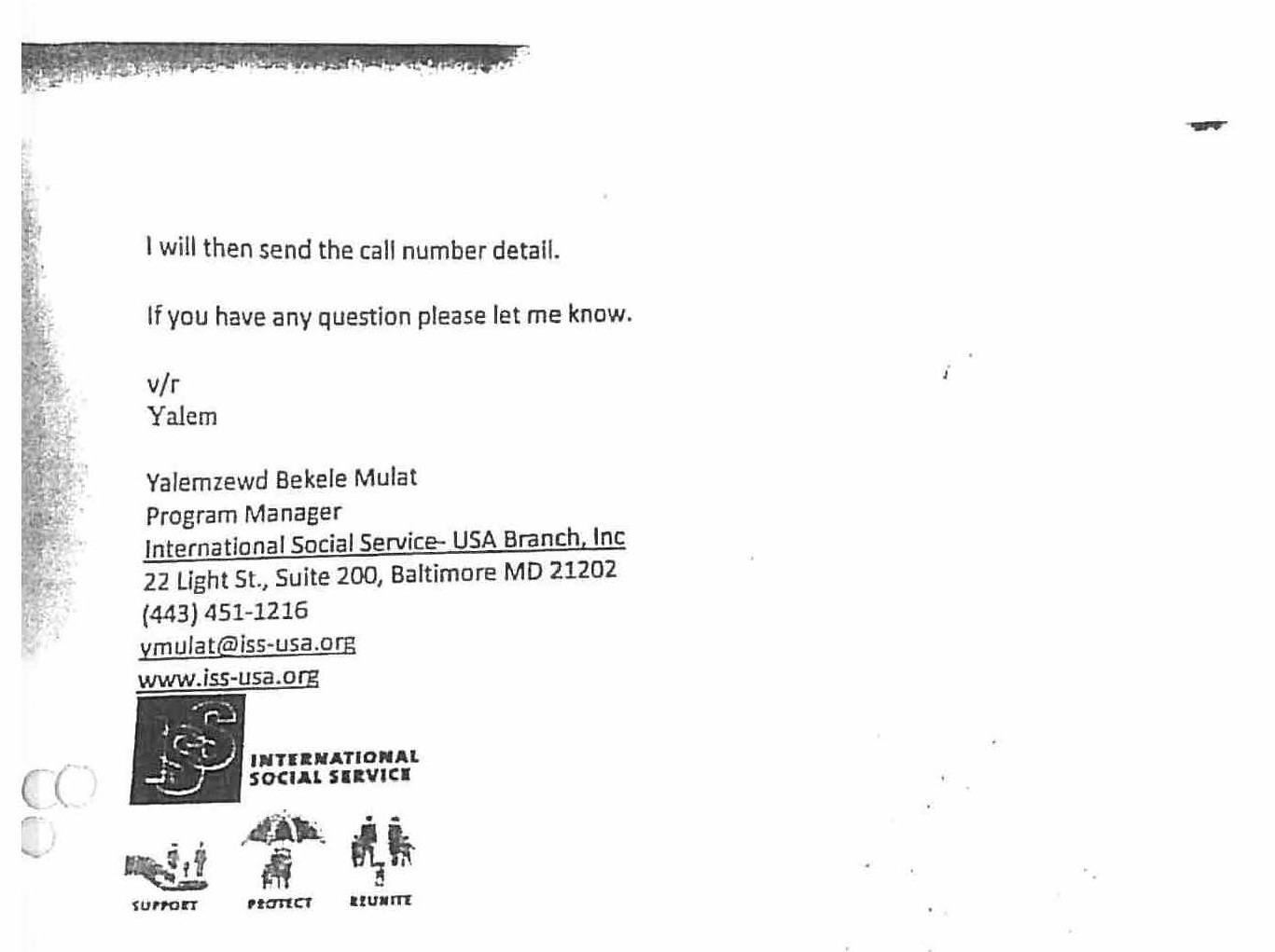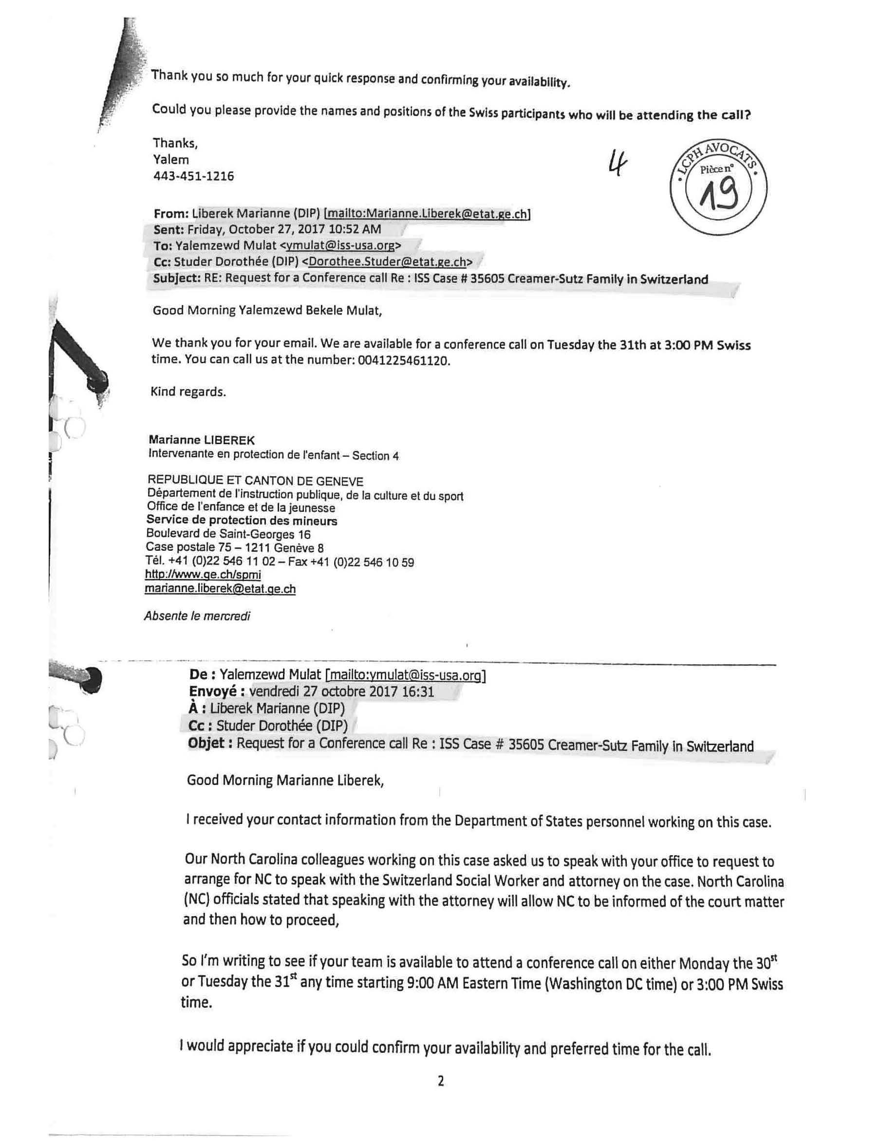 Here is an email correspondence between ISS-USA representative Yalemzewd Mulat and Swiss social workers: