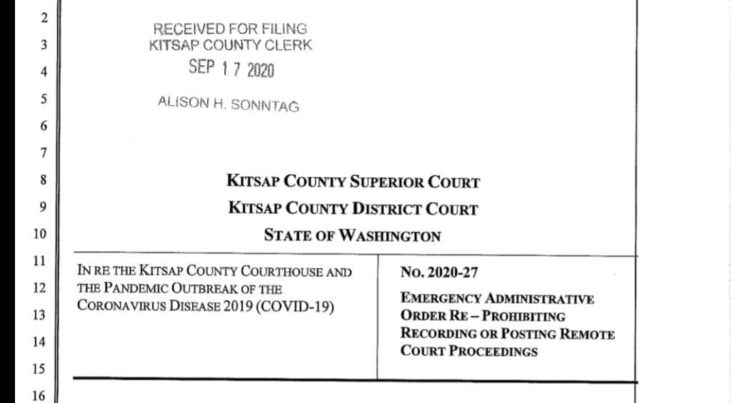 Obviously in retaliation to live streaming the hearing, the courts have now prohibited the recording or streaming of any hearing in Kitsap County without permission from the assigned commissioner or judge.