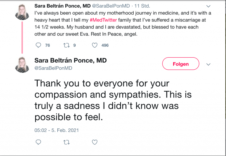 The miscarriage happened at 14 1/2 weeks, indicating it was three days after she got the first or second mRNA shot. She did not say if it was the Pfizer or Moderna shot. Dr. Beltrán Ponce has since locked her Twitter account so only verified followers can see her tweets. (Full article.)