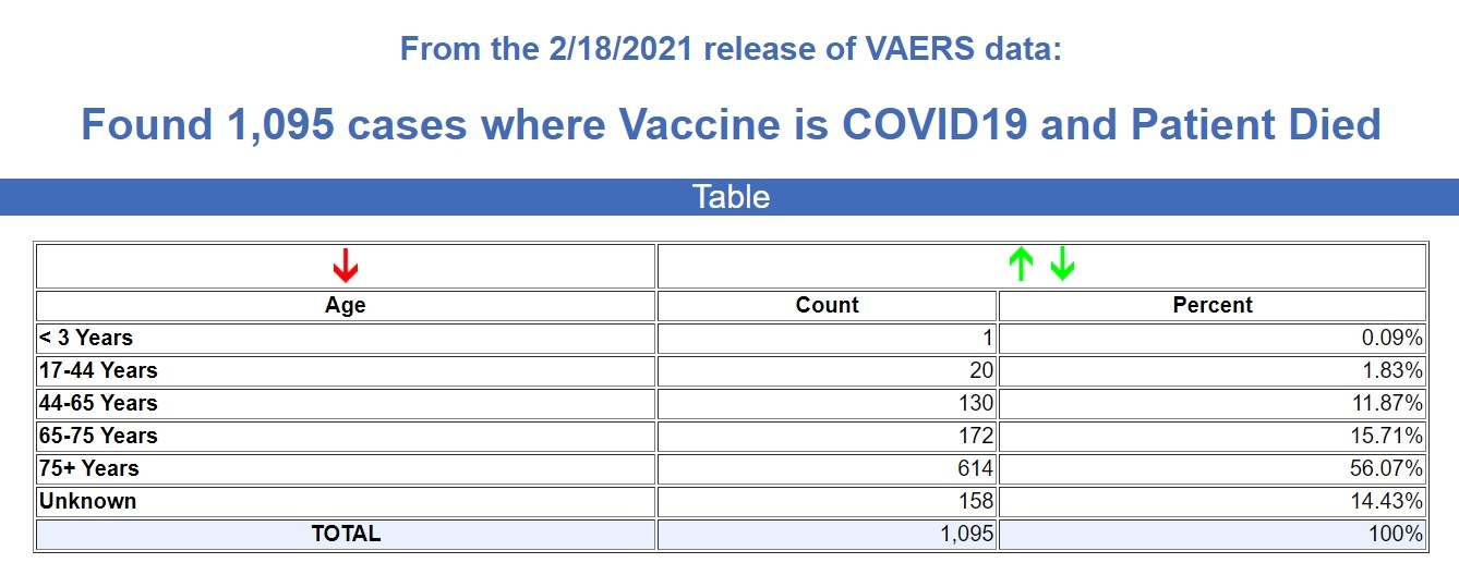 Their latest report goes through February 25, 2021. They supply three reports: one from the experimental Pfizer COVID vaccine, one from the experimental AstraZeneca COVID vaccine, and one where the “vaccine brand is unspecified.”