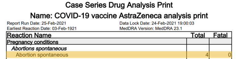 The MHRA Yellow Card data now shows that the Oxford jab has caused four women to sadly lose their unborn child, an increase of one on the previous weeks data.