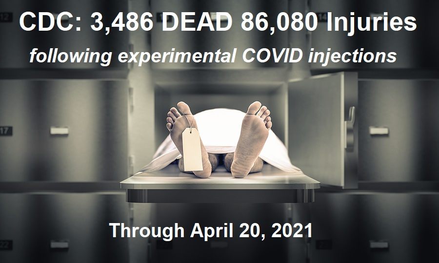 The CDC announced this week that deaths reported to the Vaccine Adverse Event Reporting System (VAERS), a U.S. Government funded database that tracks injuries and deaths caused by vaccines, following experimental COVID injections, have now reached 3,486 deaths since December of 2020, when the Pfizer and Moderna mRNA COVID shots were given emergency use authorization (EUA) by the FDA.