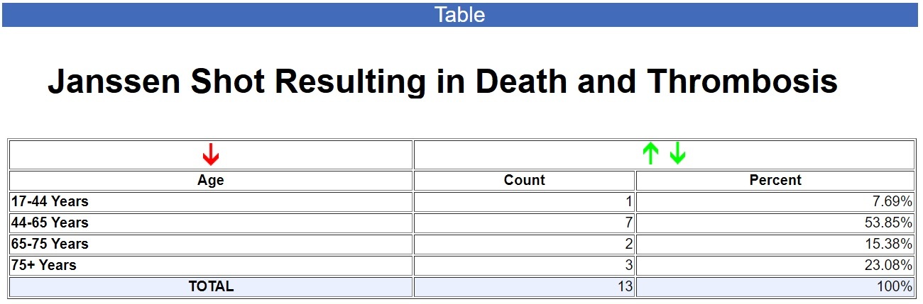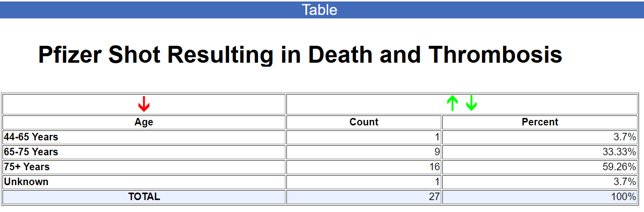 With the 27 deaths with blood clots among the Pfizer patients, only 1 occurred below the age of 65.