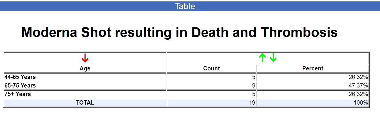 With the 19 deaths with blood clots among the Moderna patients, 5 occurred below the age of 65.