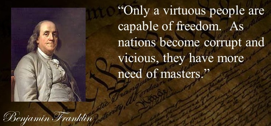 Benjamin Rush, Signer of the Declaration of Independence said. “[T]he only foundation for a useful education in a republic is to be aid in religion. Without this there can be no virtue, and without virtue there can be no liberty, and liberty is the object and life of all republican governments. Without religion, I believe that learning does real mischief to the morals and principles of mankind.”