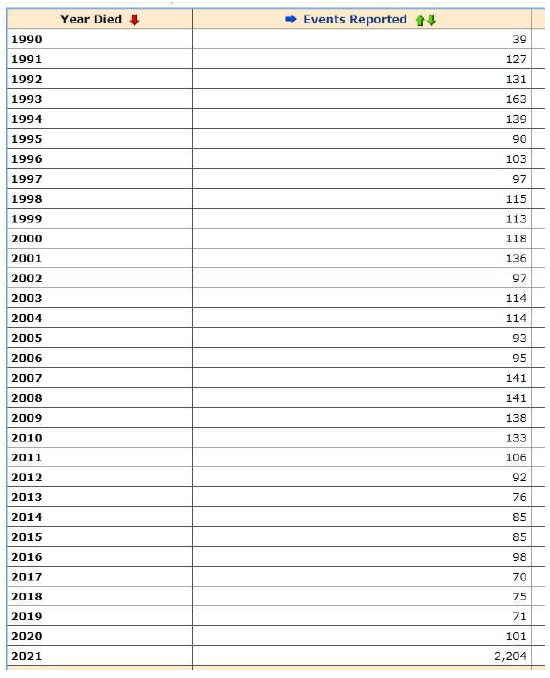 Official Government Data: Twice as Many Deaths Following COVID-19 Vaccines in 1 Year as Deaths Following All Vaccines for the Previous 30 Years