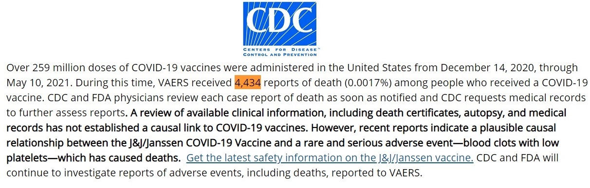 The CDC released the latest death figures following the experimental COVID injections this week, and that death toll now stands at 4,434 people, adults and children, that have been recorded as dying after receiving one of the experimental COVID injections.