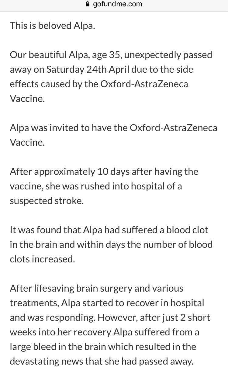 35 Year Old Alpa Tailor Dies After Complications From Astra Zeneca Vaccine
