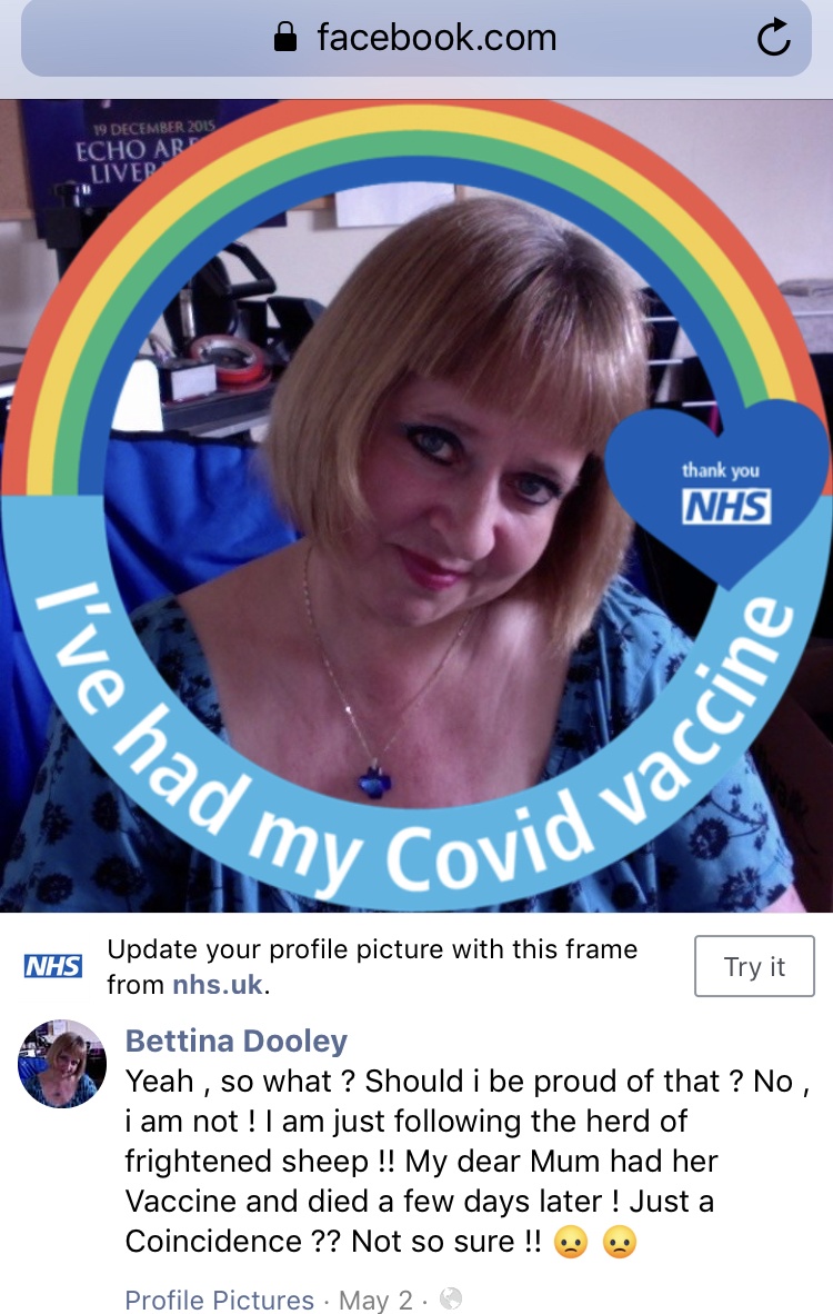 Ellie’s mother, Donna Mclaughlin-Peacock, is also a healthcare worker. She seems to understand the inherent dangers of the AstraZeneca shots, but appears to be ok with the equally-dangerous Pfizer and Moderna shots.