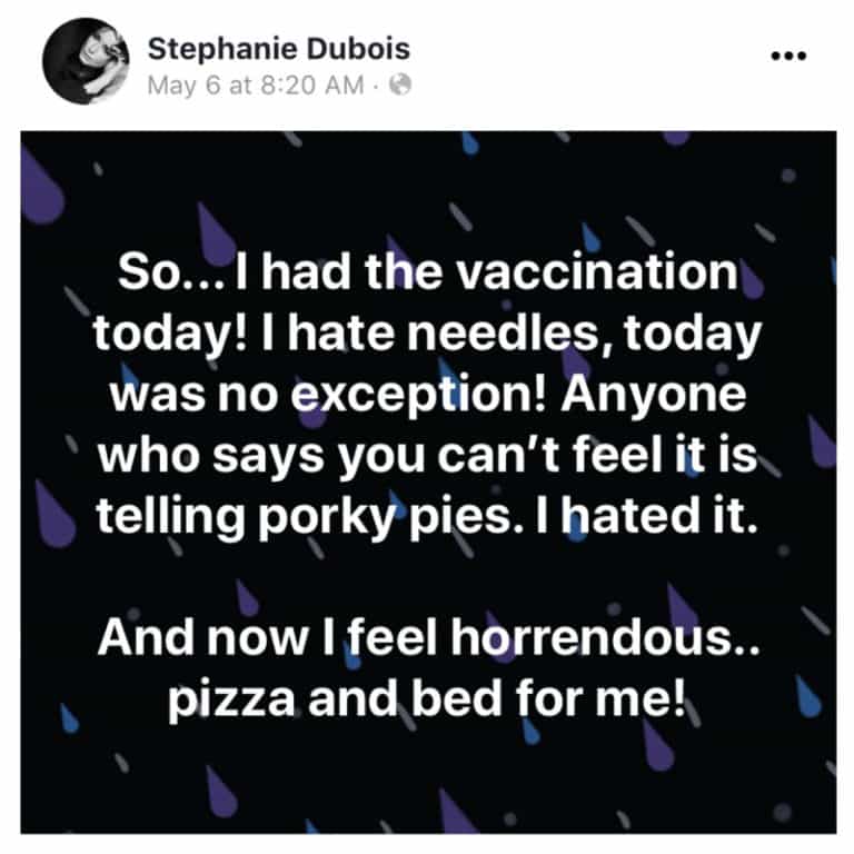 Stephanie wrote, “Maybe I’m having a prolonged reaction to my Covid jab last week, or maybe those side effects affected my immune system and I’ve caught something else in the process.”
