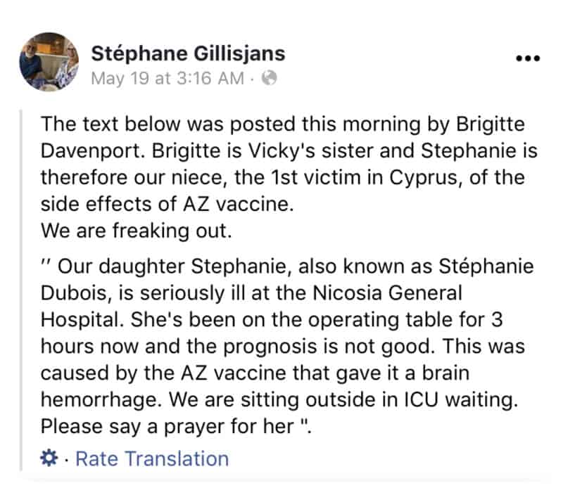 UK based freelance model Stephanie Dubois who lived also in Cyprus, has died following a reaction to the AstraZeneca vaccine.