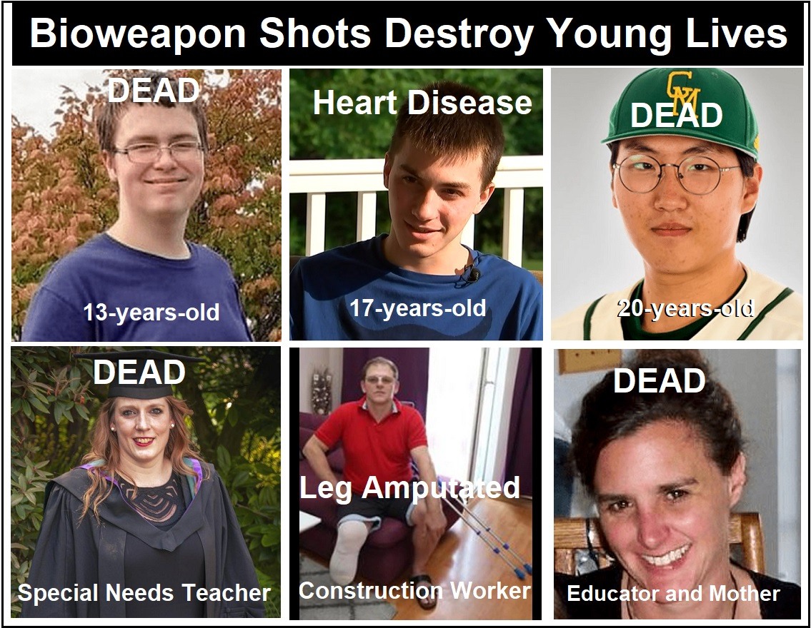 Mass murder by lethal injection of the COVID-19 bioweapons continues worldwide, and we are now seeing more and more young lives being destroyed by these shots.