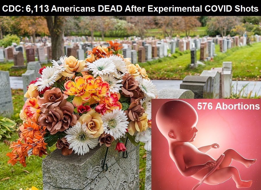 The CDC is now reporting that 6,113 people have died following COVID-19 injections, with their latest release of data today in the Vaccine Adverse Event Reporting System (VAERS), a U.S. Government funded database that tracks injuries and deaths caused by vaccines.