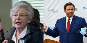 Alabama Republican Governor Kay Ivey (Left – Source [1]) and Florida Republican Governor Ron DeSantis (Right – Source [2].)