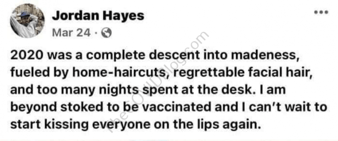 Mr. Hayes apparently received his second mRNA injection on March 24. He celebrated being “[fully] vaccinated” and now being able to “kiss everyone on the lips again.”
