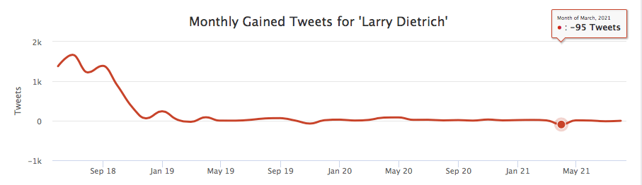 Mr. Dietrich was sporadic on social media. He typically posted on Facebook 5-6 times per month. His Twitter activity is more interesting. He tweeted 21 times in January 2021 and nine times in February, according to Social Blade. But there were -95 (that’s negative 95) tweets in March, which would have been the month he received the first Moderna shot.