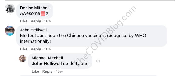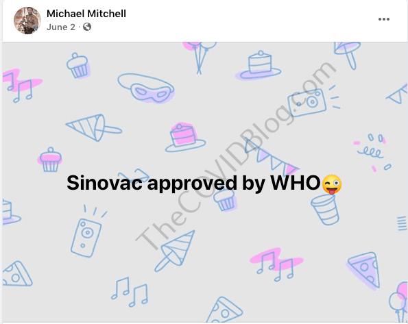 Mr. Mitchell appeared to celebrate what he considered good news on June 2 – that the World Health Organization (WHO) apparently approved Sinovac as a legitimate “vaccine.”