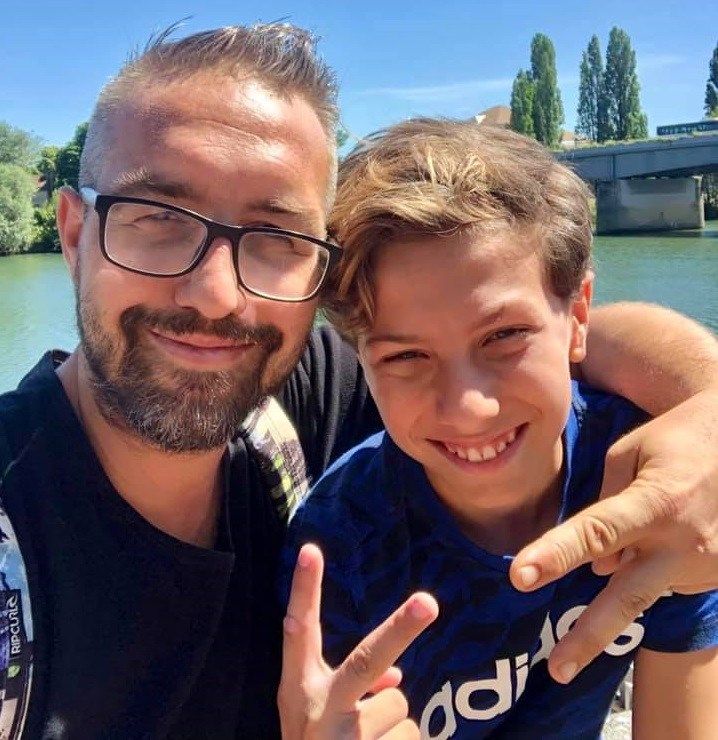 Ludovic Clerc with his 13-year-old son. Image from Facebook.