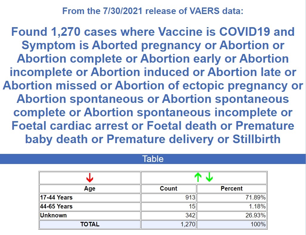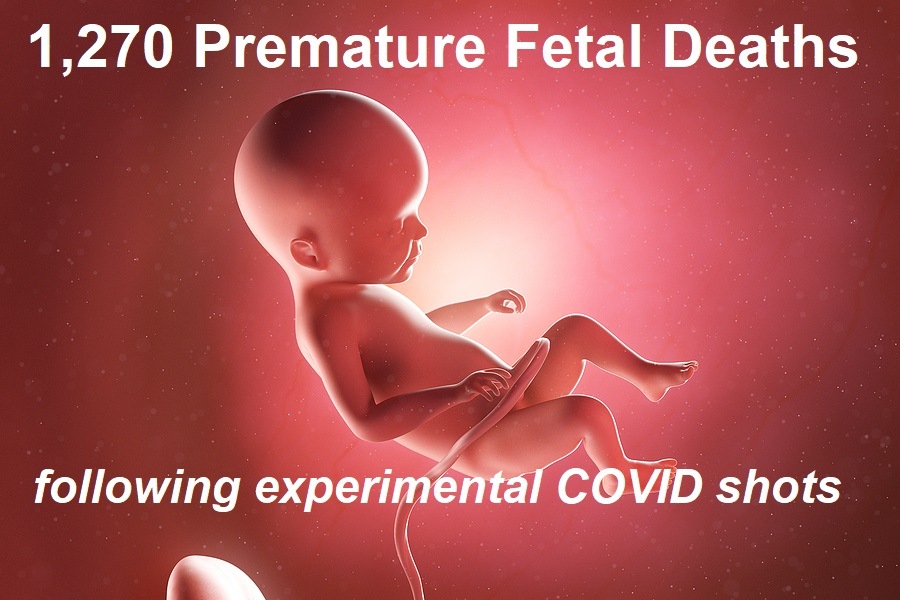 A search of the CDC Vaccine Adverse Event Reporting System (VAERS) lists 1,270 premature fetal deaths in pregnant women following one of the experimental, non-FDA approved COVID-19 injections. (Source.)