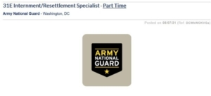 “In the Army National Guard, you will learn these valuable job skills while earning a regular paycheck and qualifying for tuition assistance. Job training for an Internment Resettlement Specialist requires 10 weeks of Basic Combat Training, where you’ll learn basic Soldiering skills, and seven weeks of Advanced Individual Training with on-the-job instruction. Part of this time is spent in the classroom and part of the time in the field,” states this Army National Guard job posting. [3]