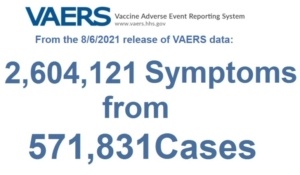 UPDATE 8/20/21 – The VAERS database was updated today, and there are now 595,622 cases with 2,714,620 reported symptoms.