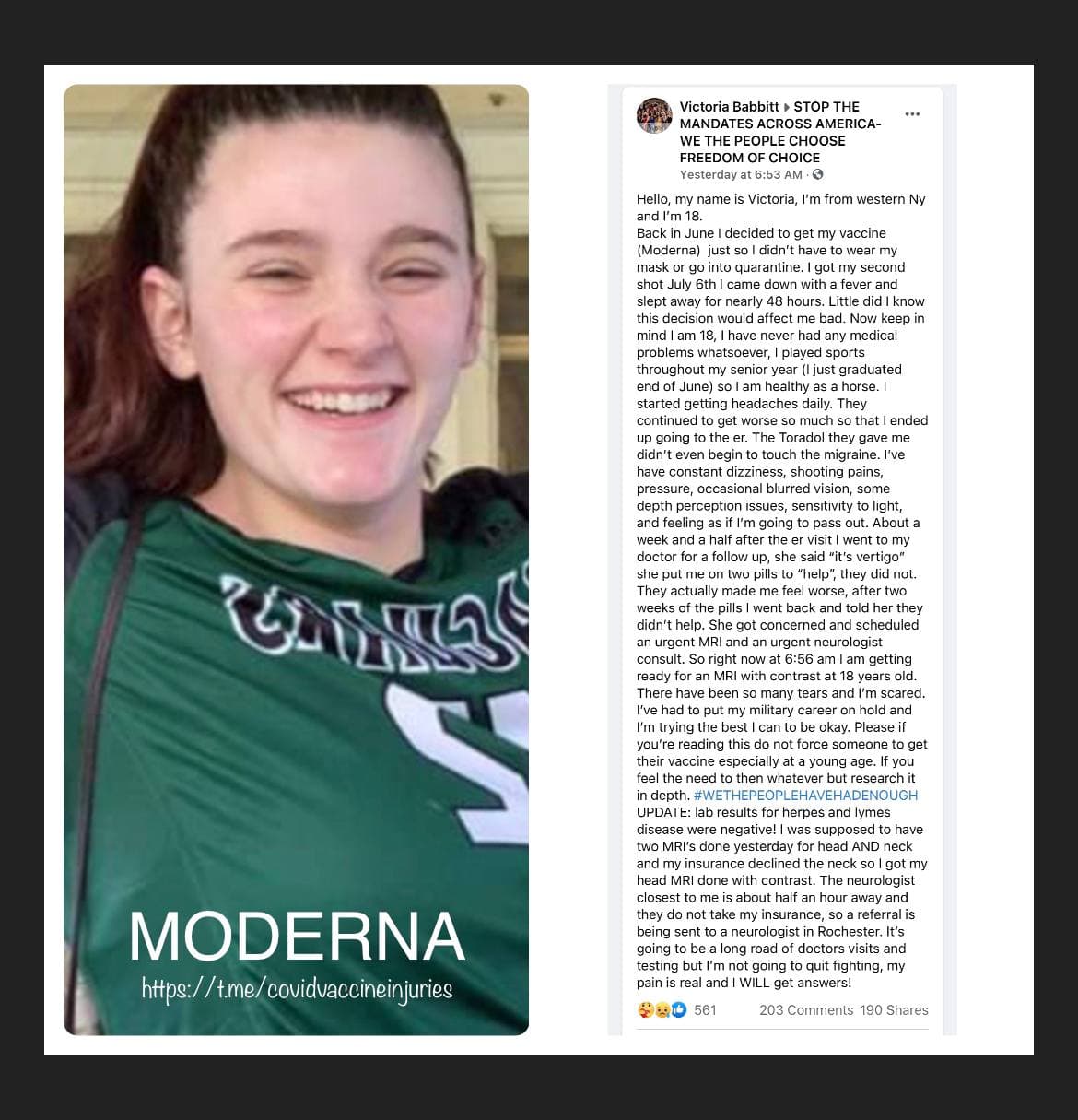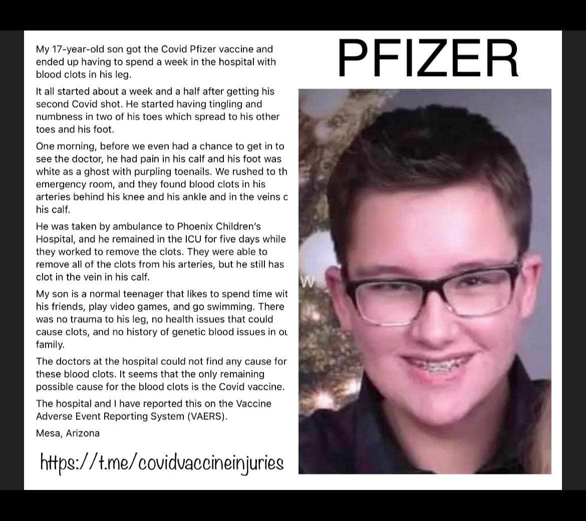 The following stories are posted on the “Covid Vaccine Injuries” Telegram channel.