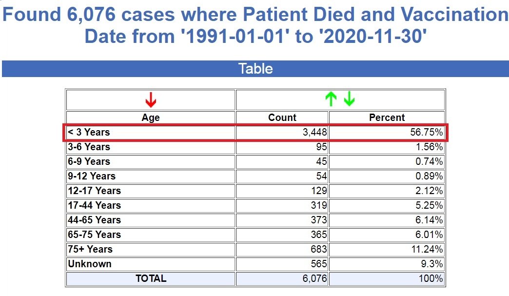 Over 56% of the 6,076 recorded deaths following vaccination for the previous 30 years prior to COVID were among infants below the age of 3, according the government.