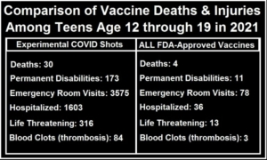CDC: Teens Injected with COVID Shots have 7.5 X More Deaths, 15 X More Disabilities, 44 X More Hospitalizations than All FDA Approved Vaccines in 2021 [13]