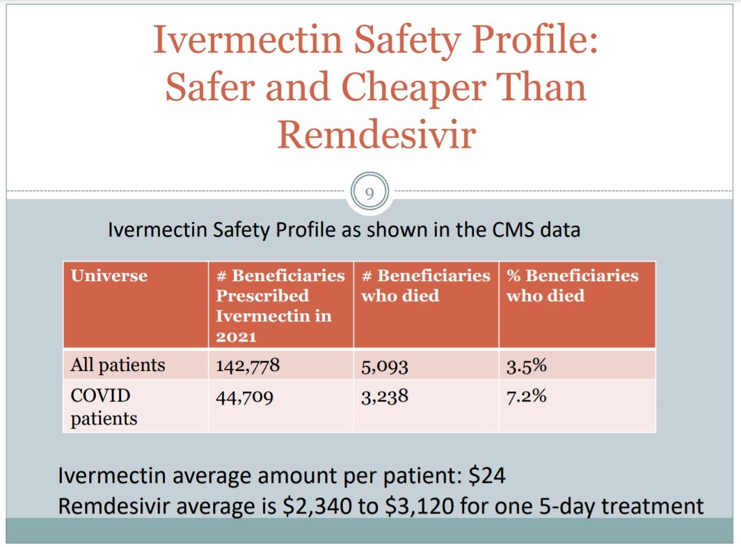 By contrast, only 3.5% of people put on Ivermectin died, according to CMS data. But there are no longer any patents on Ivermectin, so it is not a money maker for the government and Big Pharma.