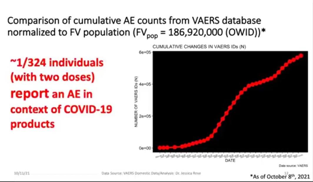Another incredible statistic she found was that about one out of every 324 individuals receiving a COVID-19 shot has reported an adverse event.
