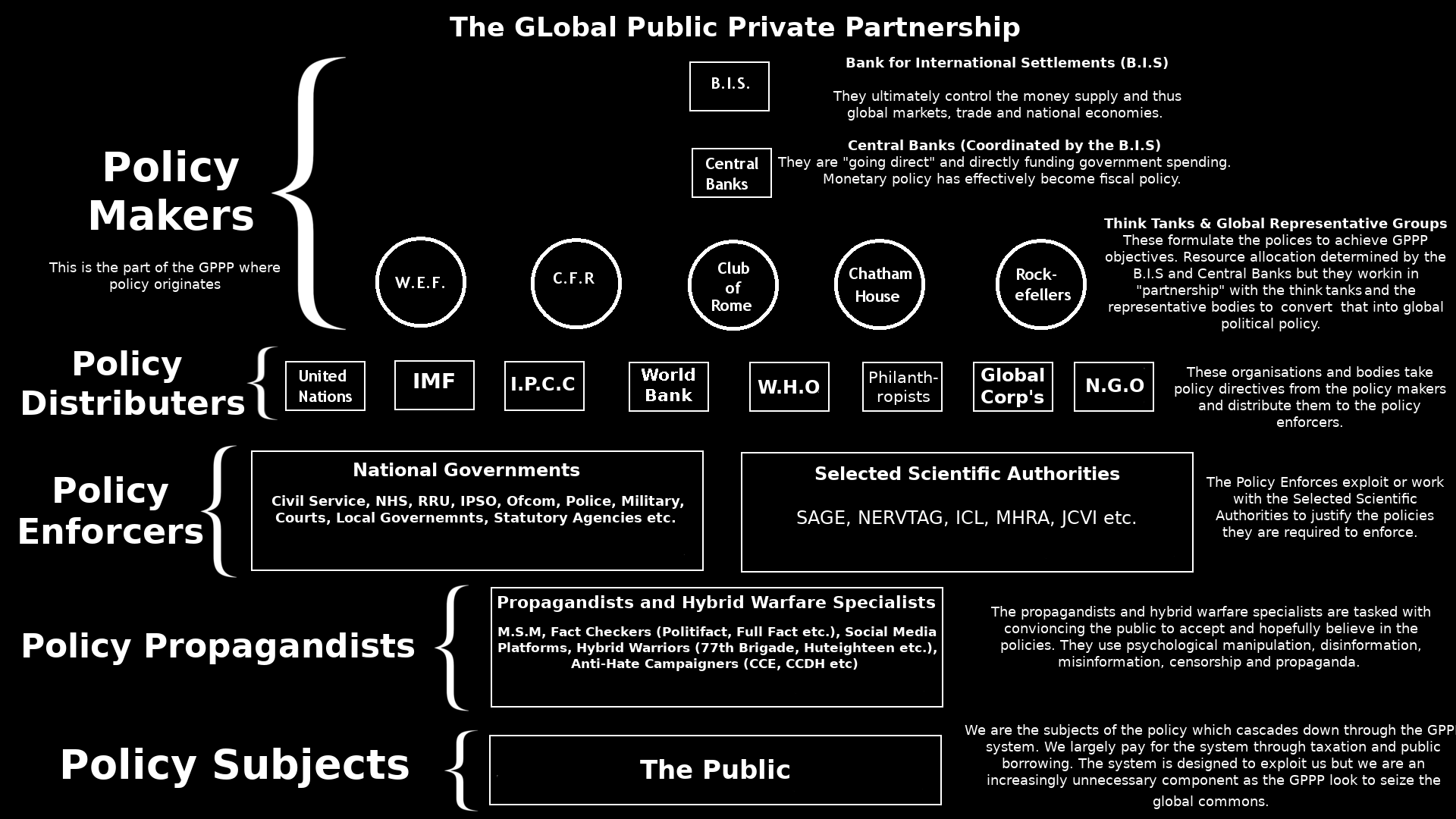 The GPPP controls global finance and the world’s economy. It sets world, national and local policy (via global governance) and then promotes those policies using the mainstream media (MSM) corporations who are also “partners” within the GPPP.