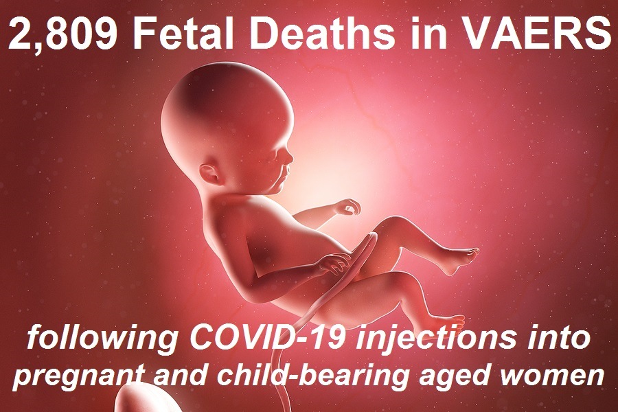 As of this most recent update in VAERS, we have now found 2,809 fetal deaths following COVID-19 shots injected into pregnant and child-bearing women for the past 11 months. (Source.)