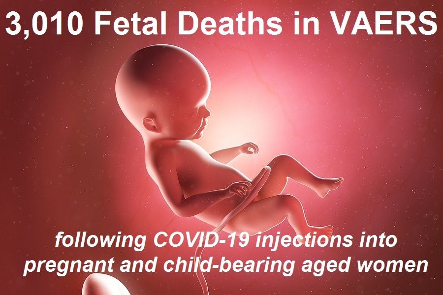 With the update in VAERS today (12/24/21), we have now found 3010 fetal deaths following COVID-19 shots injected into pregnant and child-bearing women for the past year. (Source.)