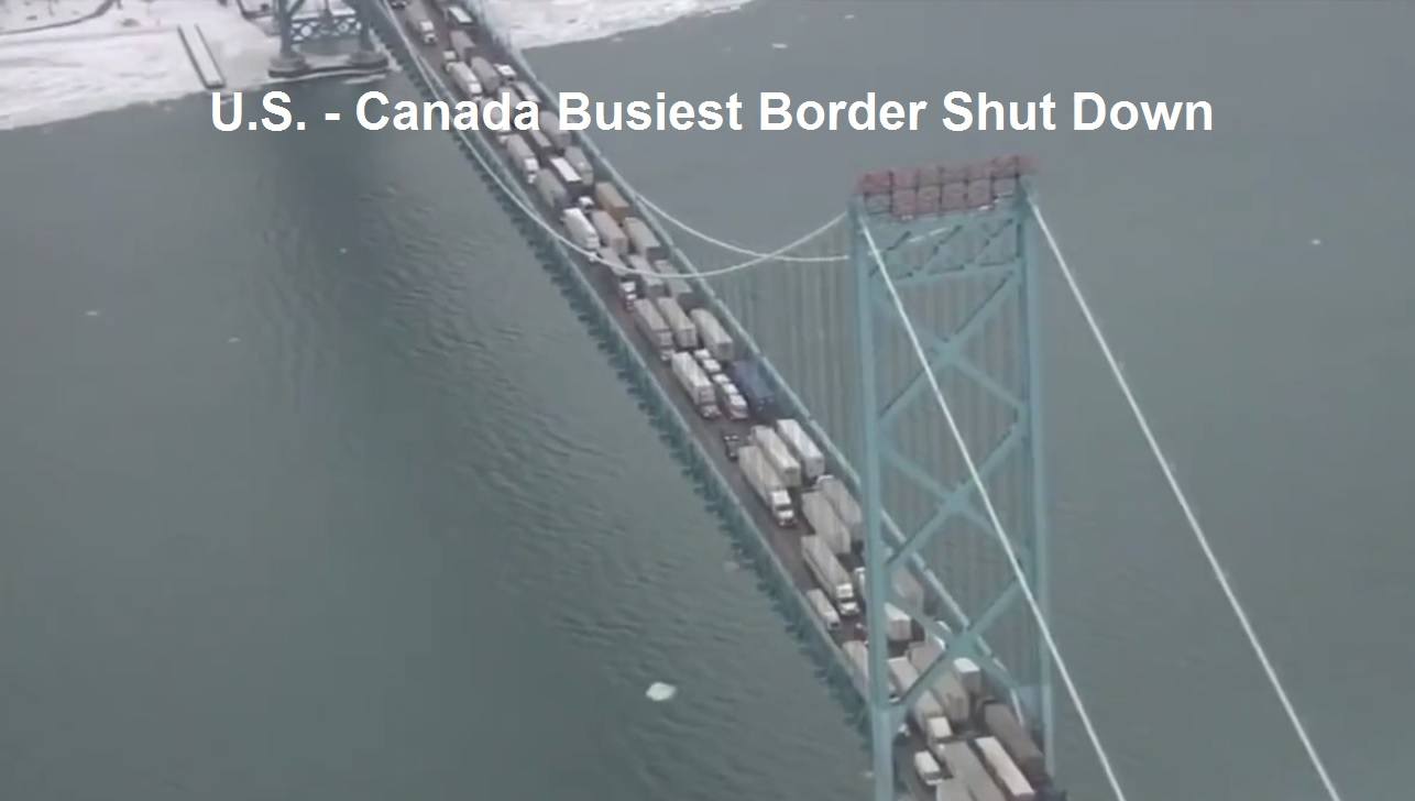 The Ambassador Bridge that connects Windsor, Ontario to Detroit, Michigan has been completely blockaded by a convoy of trucks protesting the COVID-19 vaccine mandates, which remains ongoing in Canada’s capital city of Ottawa.