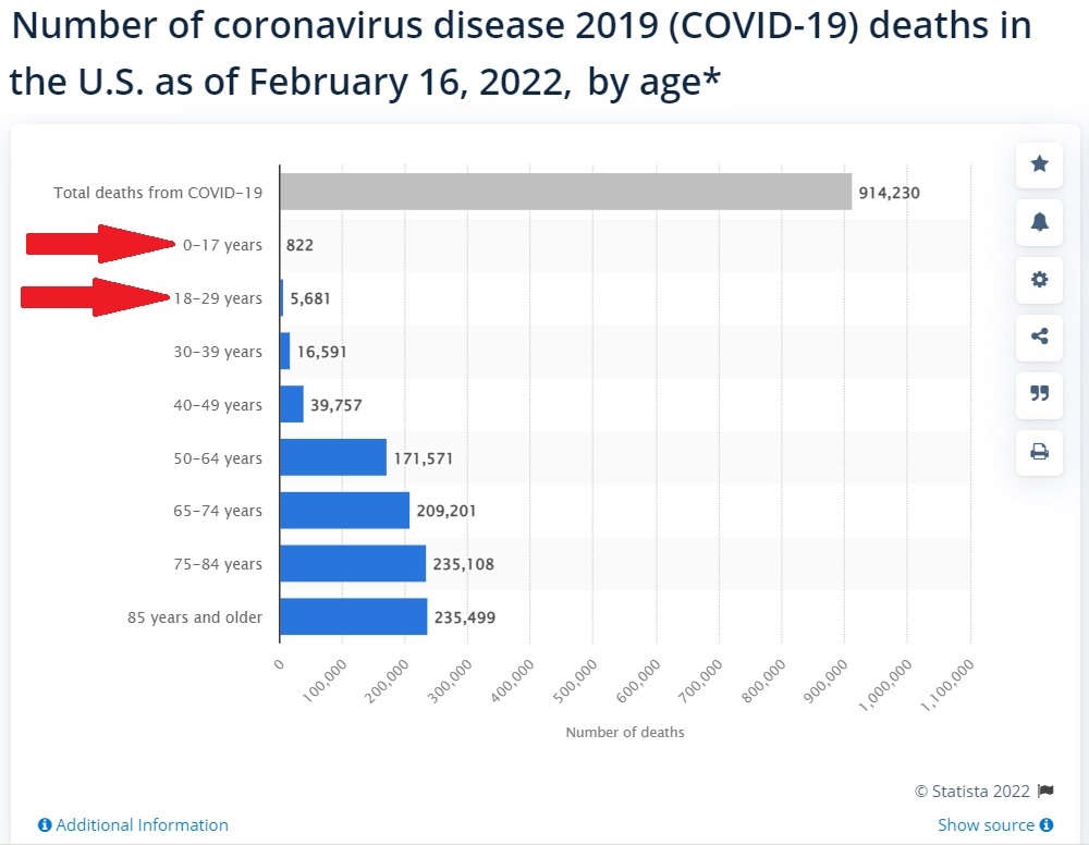 Really? What is the risk of young people dying from COVID-19 according to official statistics on deaths attributed to COVID-19 for the past two years?