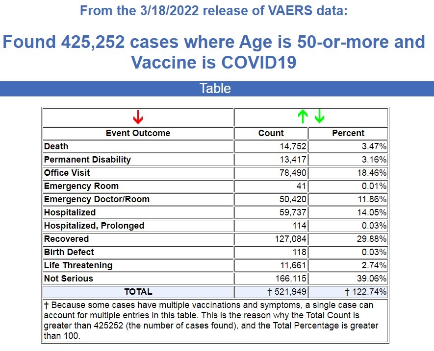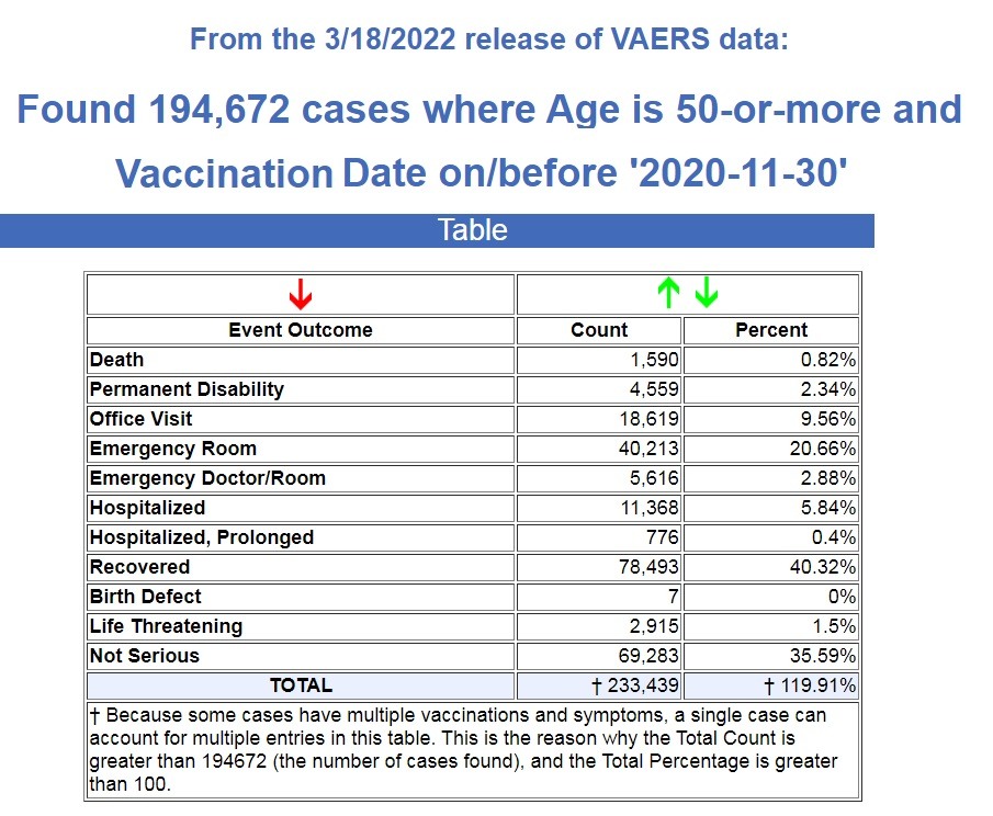 Here is what VAERS is reporting for people over the age of 50 following COVID-19 vaccines. (Source.)