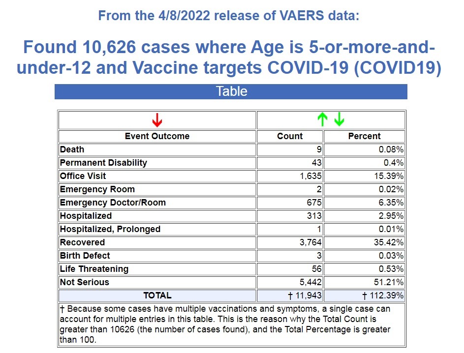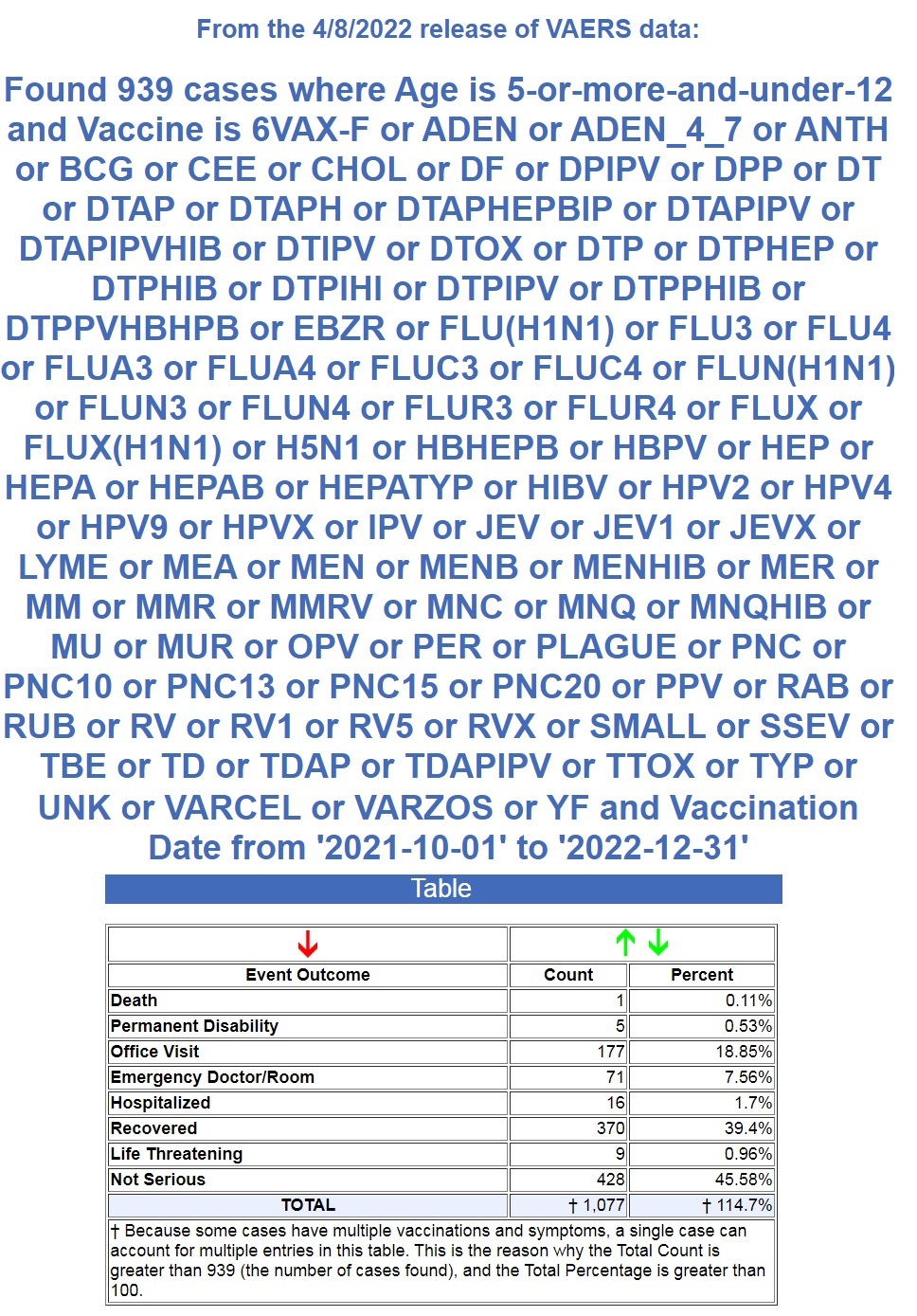 1000% Increase in Vaccine Deaths and Injuries Following Pfizer COVID-19 EUA Vaccine for 5 to 11 Year Olds