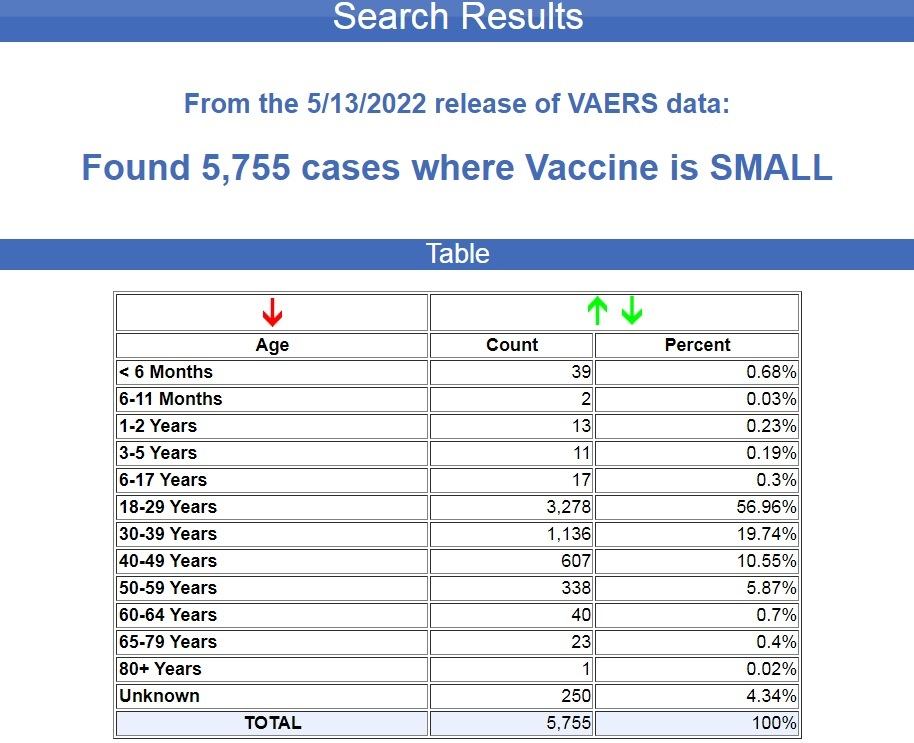 Here is the age breakdown from the reported injuries and deaths in VAERS following smallpox vaccines: