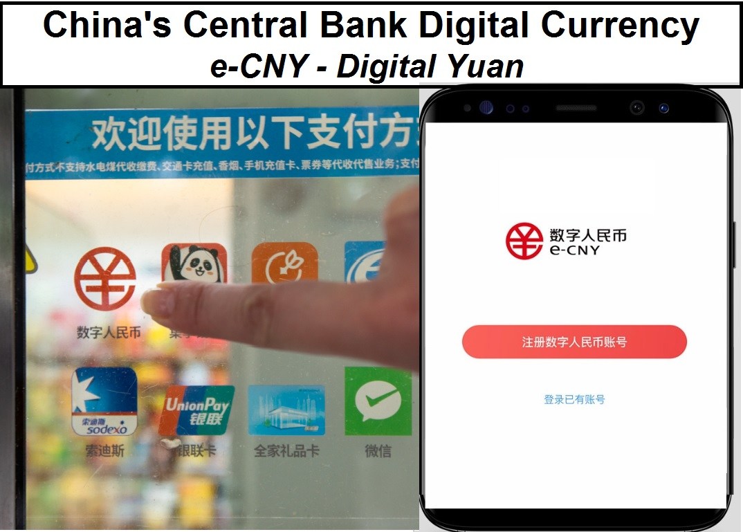 China’s CBDC is referred to as a “digital yuan,” or e-CNY, and it is issued by the People’s Bank of China (PBOC). It is different from cryptocurrencies which are “de-centralized” and privately run, and it is also different from other currently available online payment systems in China, such as WeChat Pay and Alipay.