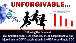The latest figures published by the USA’s Centers for Disease Control reveal over 56,000 children have been injured due to Covid-19 vaccination across the USA, and sadly 1,174 of these children either suffered a life-threatening event or a permanent disability, while tragically a further 159 children sadly lost their lives.