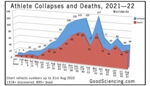 Athlete collapses and deaths chart from 1st January 2021 to 31st August 2022. Good Sciencing.