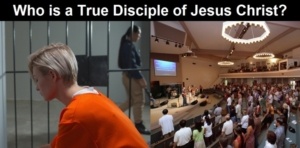 Which image more likely shows a disciple of Jesus? Left: woman “alone” in prison. Right: Contemporary Christian Worship Service with many “believers.”